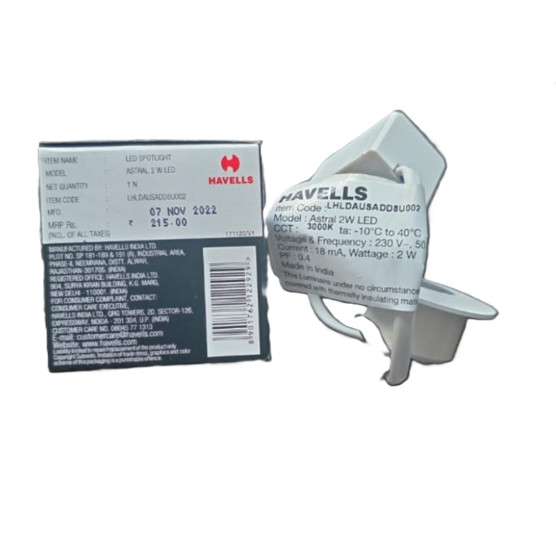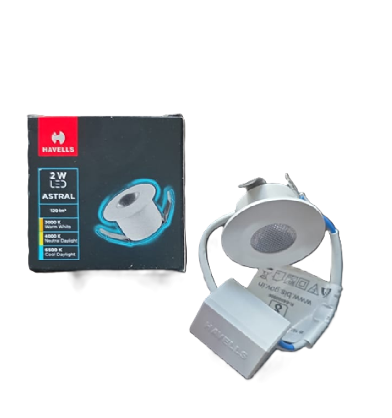 Brighten your space with the Havells 2W LED Down Light (Astral Series), designed for focused illumination and elegant interiors. This energy-efficient LED spotlight delivers bright, glare-free light with low power consumption, making it ideal for homes, offices, showrooms, and commercial spaces.