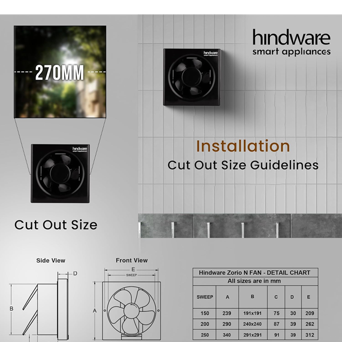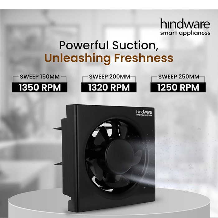 Hindware Zorio N Exhaust Fan 150Mm 6″ Black (Plastic) |Hindware Zorio N 150 mm Exhaust Fan For Kitchen, Bathroom with Strong Air Suction, Rust Proof Body and Dust Protection Shutters (Black)