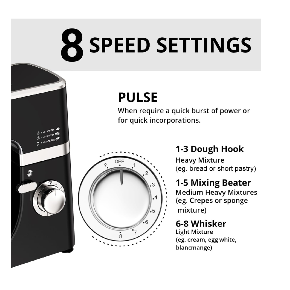 Multiple Speed Settings: 8-speed control with pulse function for precise mixing.