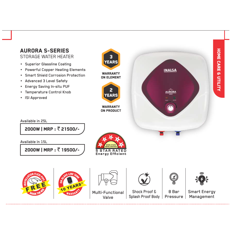 Whether for small families or higher hot water needs, the Inalsa Aurora Series is a dependable choice for everyday comfort.