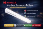 Inverter LED Battens are specially designed to keep your space illuminated even when electricity goes off. With an in-built rechargeable lithium battery and smart charging system, these battens automatically switch to backup mode during power failure, giving uninterrupted lighting for hours.