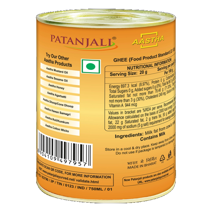 Aastha pure cow’s desi ghee makes your worship meaningful, the fragrance of its purity gives the power of Satvik energy to your worship . Along with this, it also increases taste to the food.