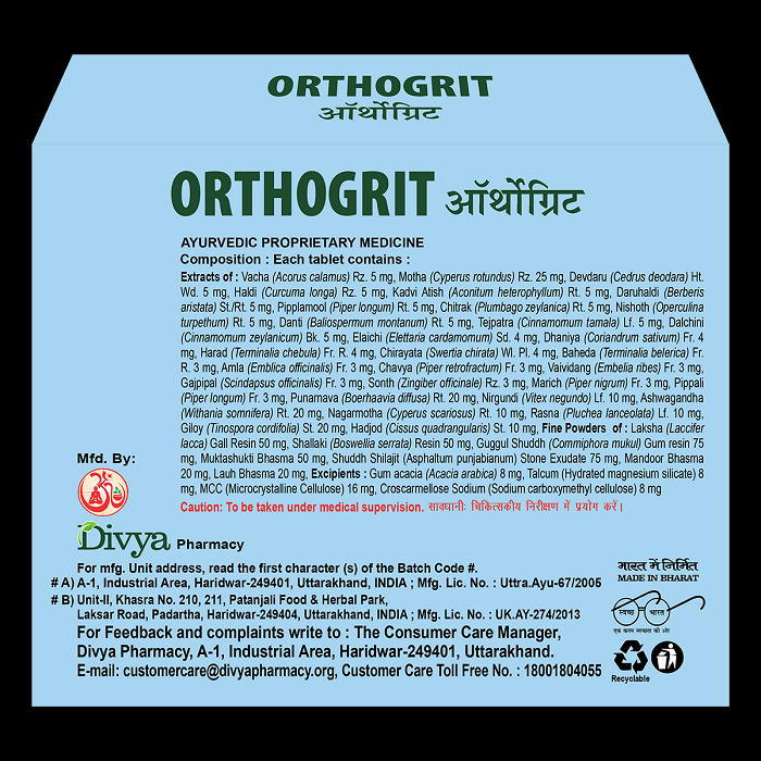 पतंजलि दिव्य ऑर्थोग्रिट टैबलेट विभिन्न प्राकृतिक अवयवों का एक संयोजन है: