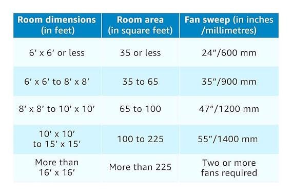 1400mm Sweep Size: Ideal for halls, showrooms and large rooms