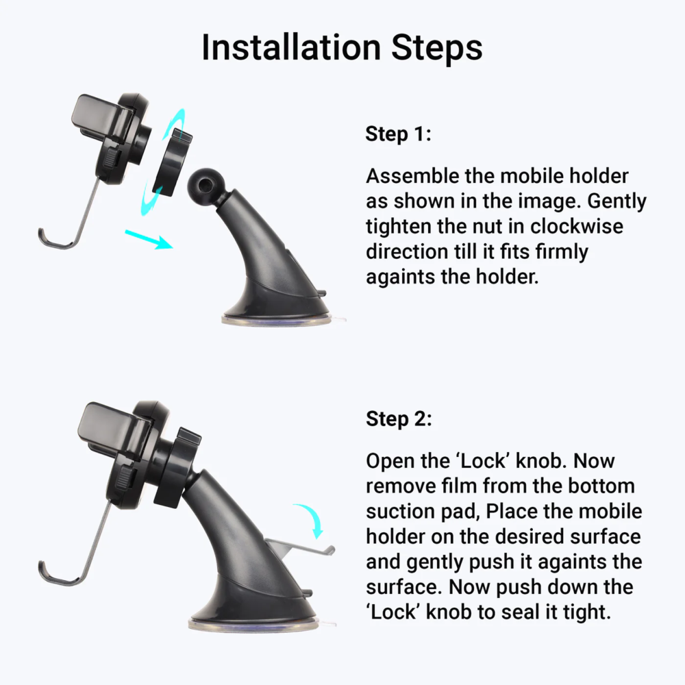 The Zebronics CMH200 Car Mobile Holder is designed to provide a safe and convenient way to mount your smartphone while driving. It can be easily installed on your car windshield, dashboard, or other suitable flat surfaces using its strong suction cup for a firm grip.