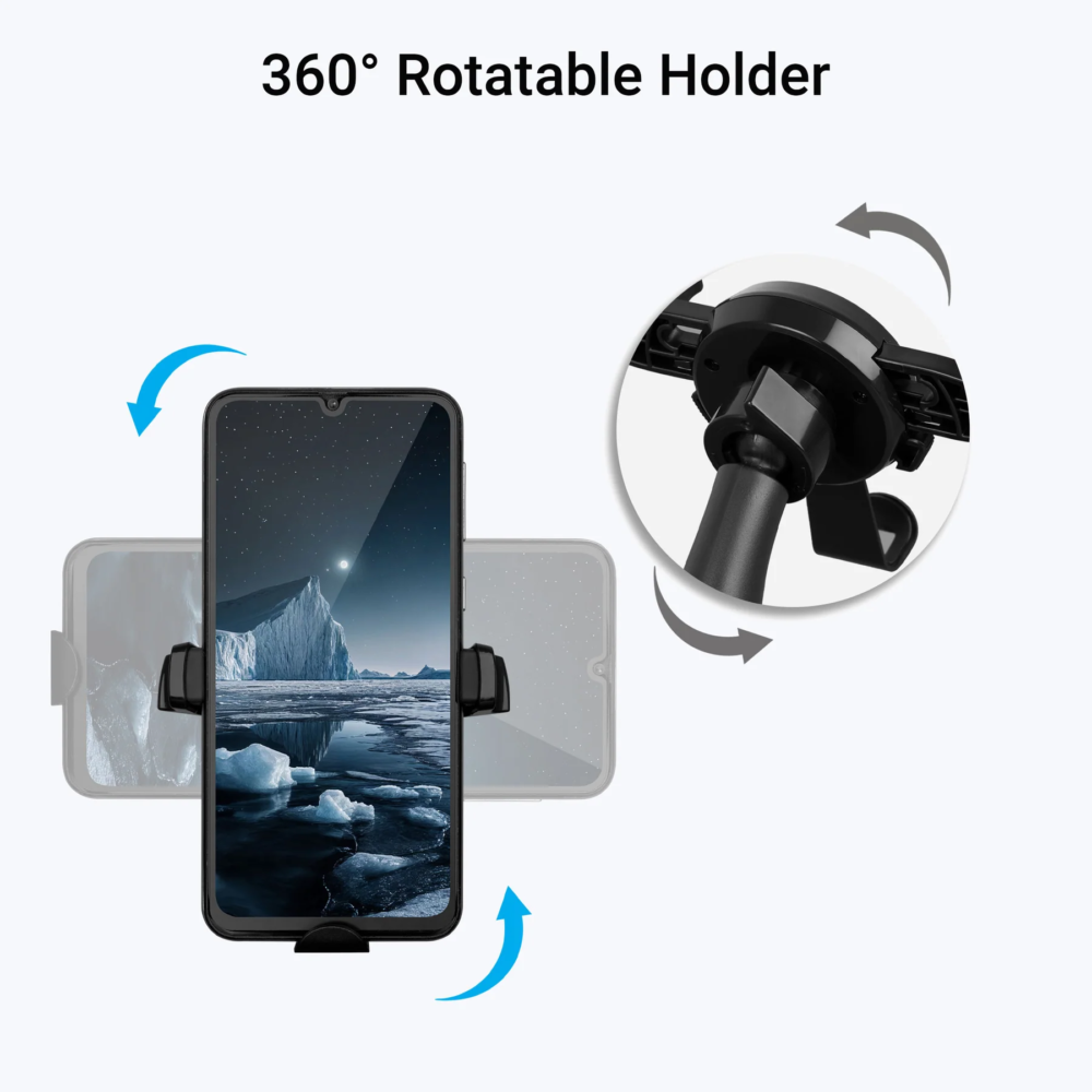 The holder features an anti-skid silicone pad that keeps your phone secure and prevents scratches. With its 360° rotatable design, you can easily adjust your smartphone to the best viewing angle for navigation, calls, or music control.
