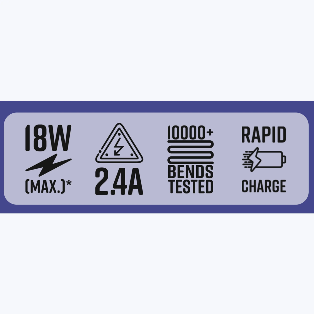 The cable features superior durability and is tested for 10,000+ bends, making it suitable for everyday use. Its 1 meter length provides convenient charging while maintaining flexibility and portability.