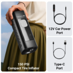 This portable inflator supports both wireless and wired operation. You can use the rechargeable battery for convenient portable usage or connect it directly to your car using the 12V car port adapter for continuous power during longer inflation tasks.