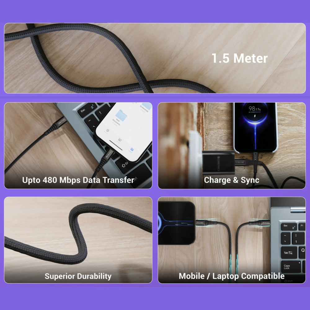 The 1.5 meter cable length provides flexibility and convenience for daily use whether at home, office, or while travelling. With superior durability and reinforced construction, the cable is designed to withstand frequent use while maintaining reliable performance.