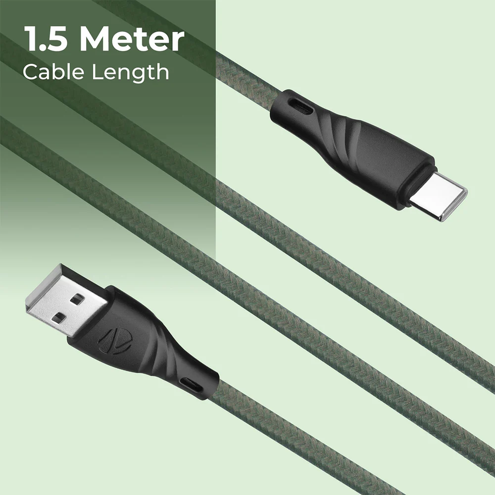 The cable features a 1.5 meter length providing flexibility and convenience during everyday use whether at home, office, or travel. Its premium nylon braided design enhances durability while preventing tangling and wear from daily usage.