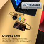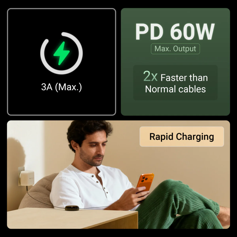 This cable features a 1 meter retractable design which allows convenient storage and prevents tangling, making it ideal for travel and everyday use. With its durable build and reinforced construction, the cable is engineered for long-lasting performance.