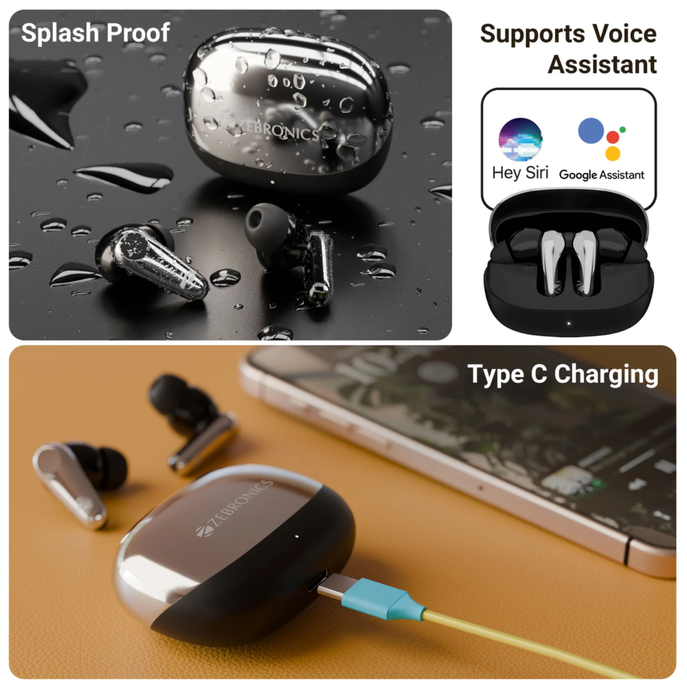 Convenience features such as touch controls, voice assistant support, splash-proof design, flash connect pairing, and Type-C charging make the ZEB-Pods 412 Monk+ a great choice for everyday use, calls, music, and gaming.