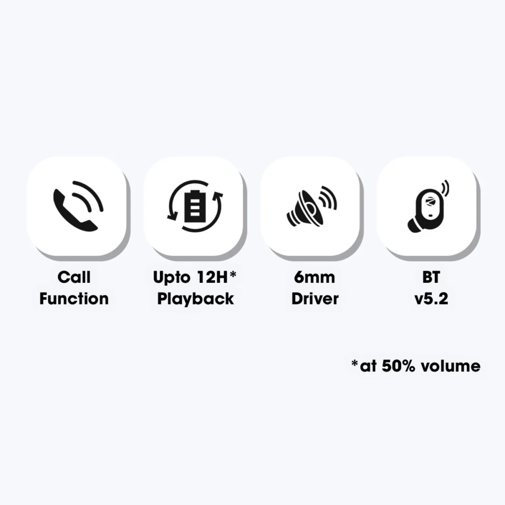 Equipped with 6mm drivers and a snug fit design, the earbuds deliver balanced stereo sound while remaining comfortable for long listening sessions. The earbuds feature an easy-to-use touch control interface that allows you to manage music playback, calls, volume adjustments, and activate the voice assistant.